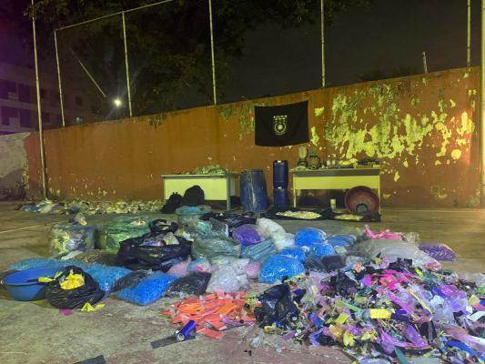 Durante o acompanhamento, na tentativa de localizar o suspeito, as equipes identificaram um forte odor de substâncias químicas vindo do imóvel, que estava com a porta aberta e sem móveis ou moradores. Na averiguação, os agentes encontraram em seu interior uma variada quantidade de materiais ilícitos, os quais foram encaminhados nesta manhã ao 8º Distrito Policial para conhecimento da autoridade de plantão, que requisitou perícia técnica no Instituto de Criminalística.