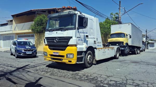 Agentes da Inspetoria de Trânsito da GCM apreenderam e removeram ao pátio, no sábado (15), um caminhão Mercedes-Benz amarelo, ano 1986, em estado de abandono na rua Porto União, no Jardim Monte Carmelo. O veículo também causava insegurança aos moradores da via, motivo da denúncia atendida pela Central 153.