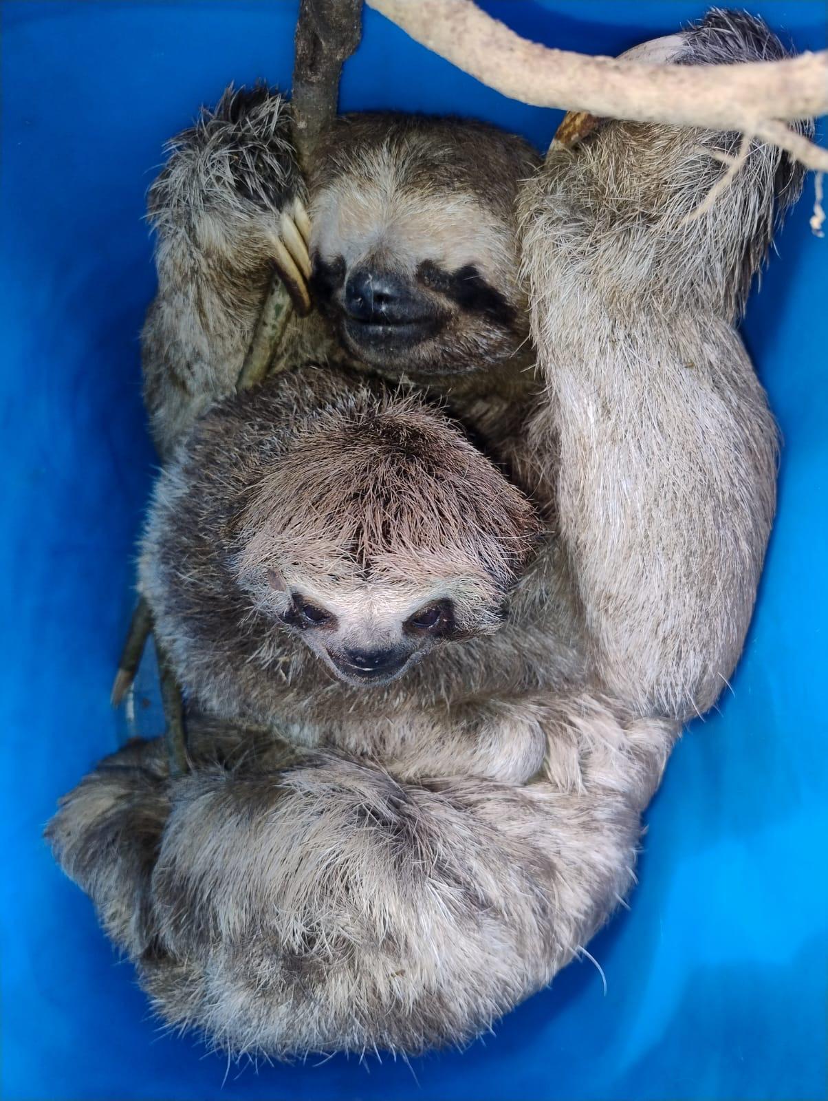 Na manhã do último sábado (26), agentes da Inspetoria Ambiental da Guarda Civil Municipal (GCM) de Guarulhos resgataram uma fêmea de bicho-preguiça com seu filhote na estrada Acácio Antônio Batista, na Vila Nova Bonsucesso. Os animais estavam em situação de risco em uma via de grande fluxo de veículos, o que aumentava as chances de atropelamento ou de ataques por cães.