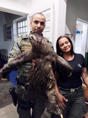 Agentes da Inspetoria Ambiental da Guarda Civil Municipal (GCM) de Guarulhos resgataram na madrugada desta quinta-feira (28) um bicho-preguiça em residência na rua Chico Mendes, no bairro Anita Garibaldi. A solicitante acionou a Central 153 informando que o animal estava fugindo de queimada em mata próxima.