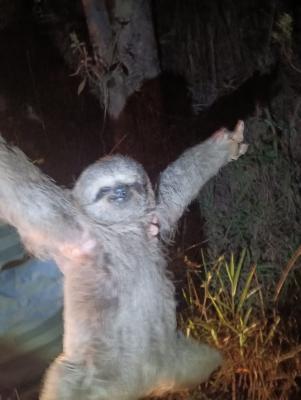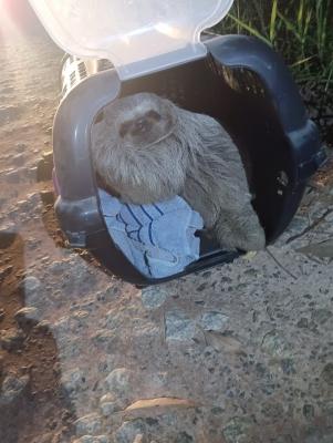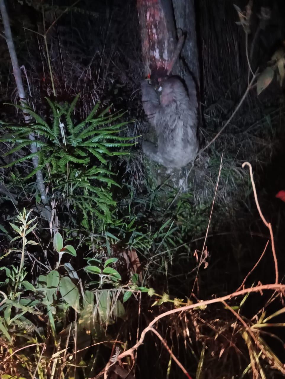 Sem ferimentos e com saúde para viver independentemente, o bicho-preguiça não precisou de atendimento veterinário e foi solto em seu habitat natural, na natureza.