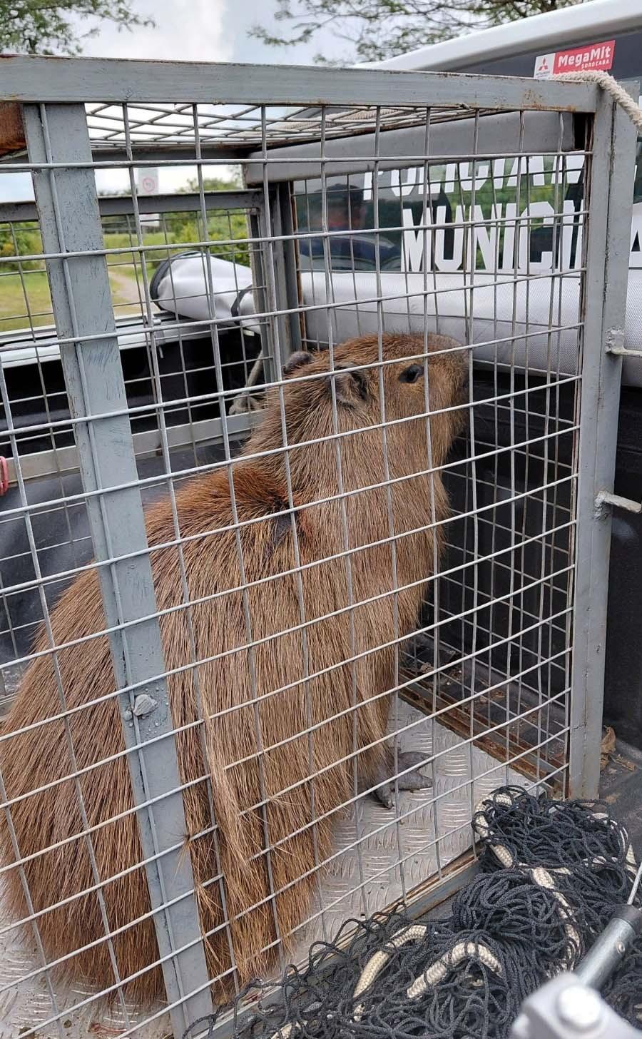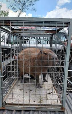 A equipe utilizou técnicas de manejo para capturar o animal com segurança. Após o resgate, a capivara que se encontrava saudável foi devolvida ao seu habitat natural em área apropriada.