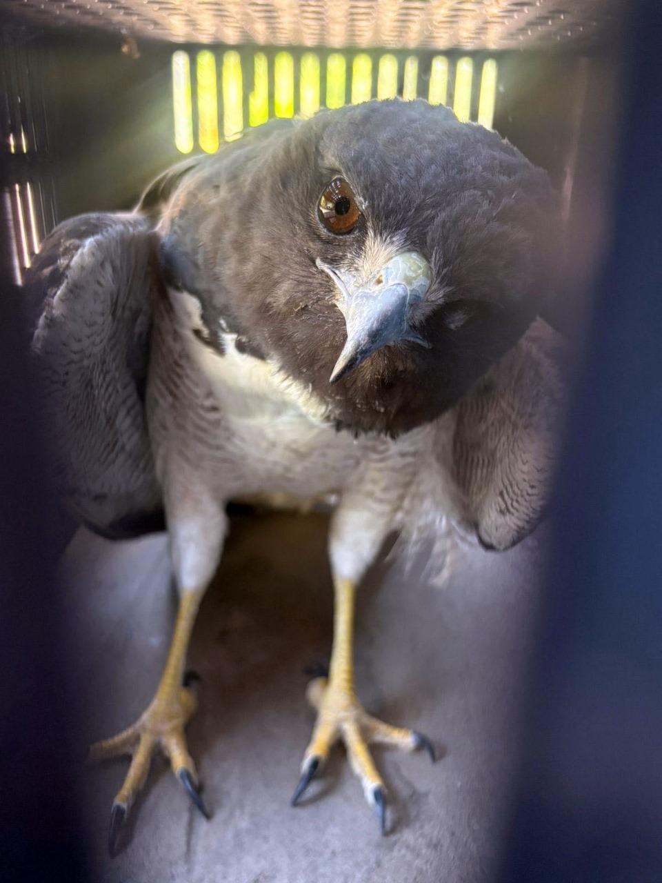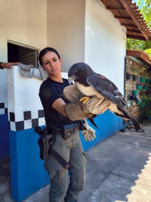 O gavião ferido foi levado por um munícipe até a Inspetoria Ambiental no domingo (30).