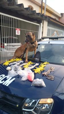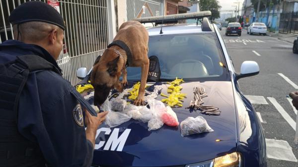 A Inspetoria de Patrulhamento com Cães da Guarda Civil Municipal (GCM) de Guarulhos prendeu um suspeito de tráfico de drogas durante uma ronda preventiva na Vila Flórida nesta quarta-feira (3). A abordagem ocorreu após a equipe notar que um indivíduo mudou bruscamente de direção ao perceber a aproximação da viatura.