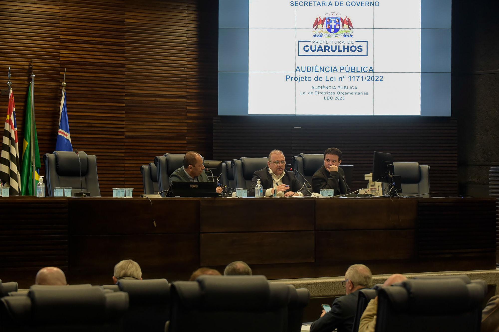 O secretário de Governo de Guarulhos, Edmilson Americano, apresentou na manhã desta quarta-feira (15) na Câmara Municipal a previsão orçamentária (LDO) da Prefeitura para o ano de 2023, de R$ 5,61 bilhões, o que representa um aumento de 10,27% em relação ao que foi previsto para este ano por meio da LDO de 2021 (R$ 5,08 bilhões).