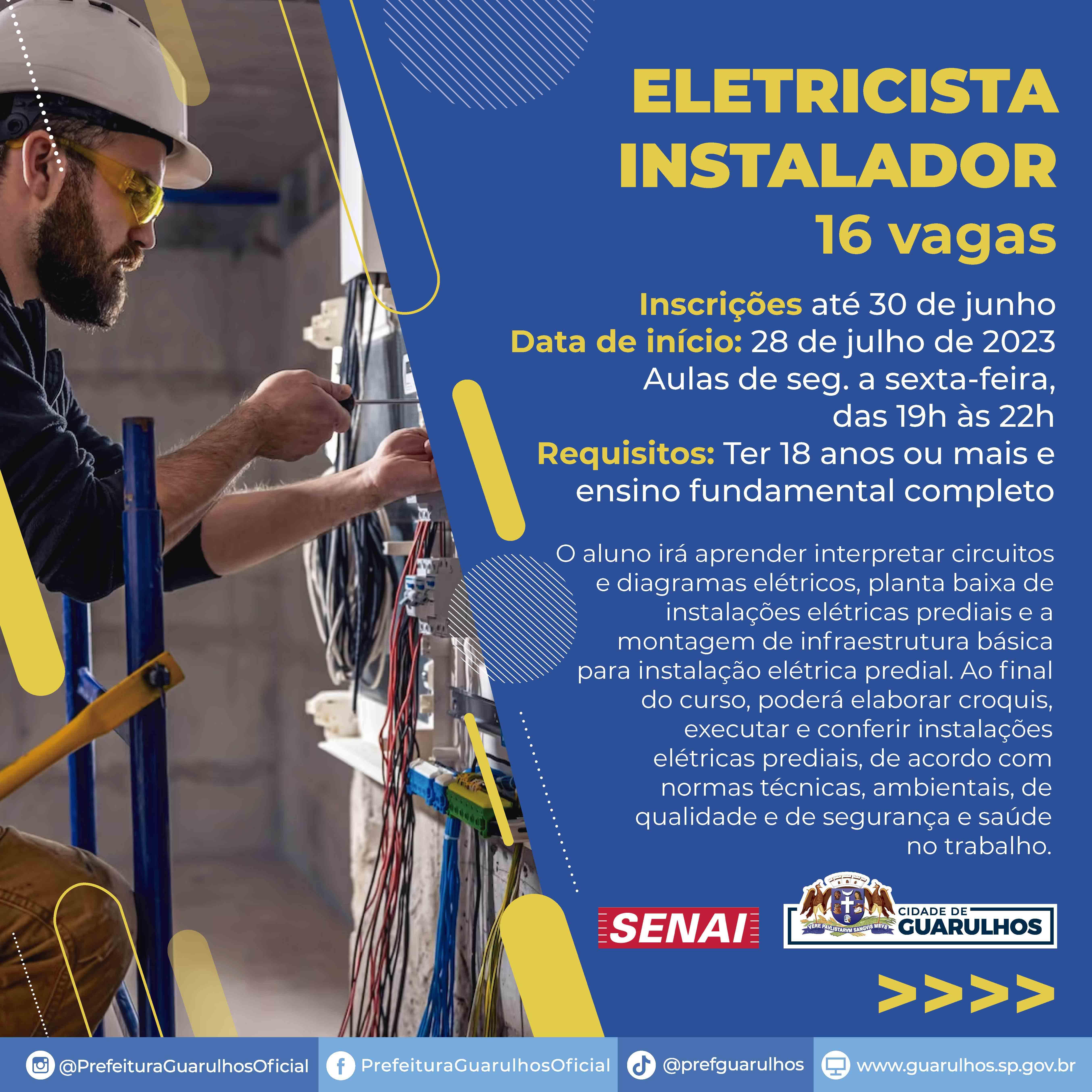 Eletricista instalador – 16 vagas