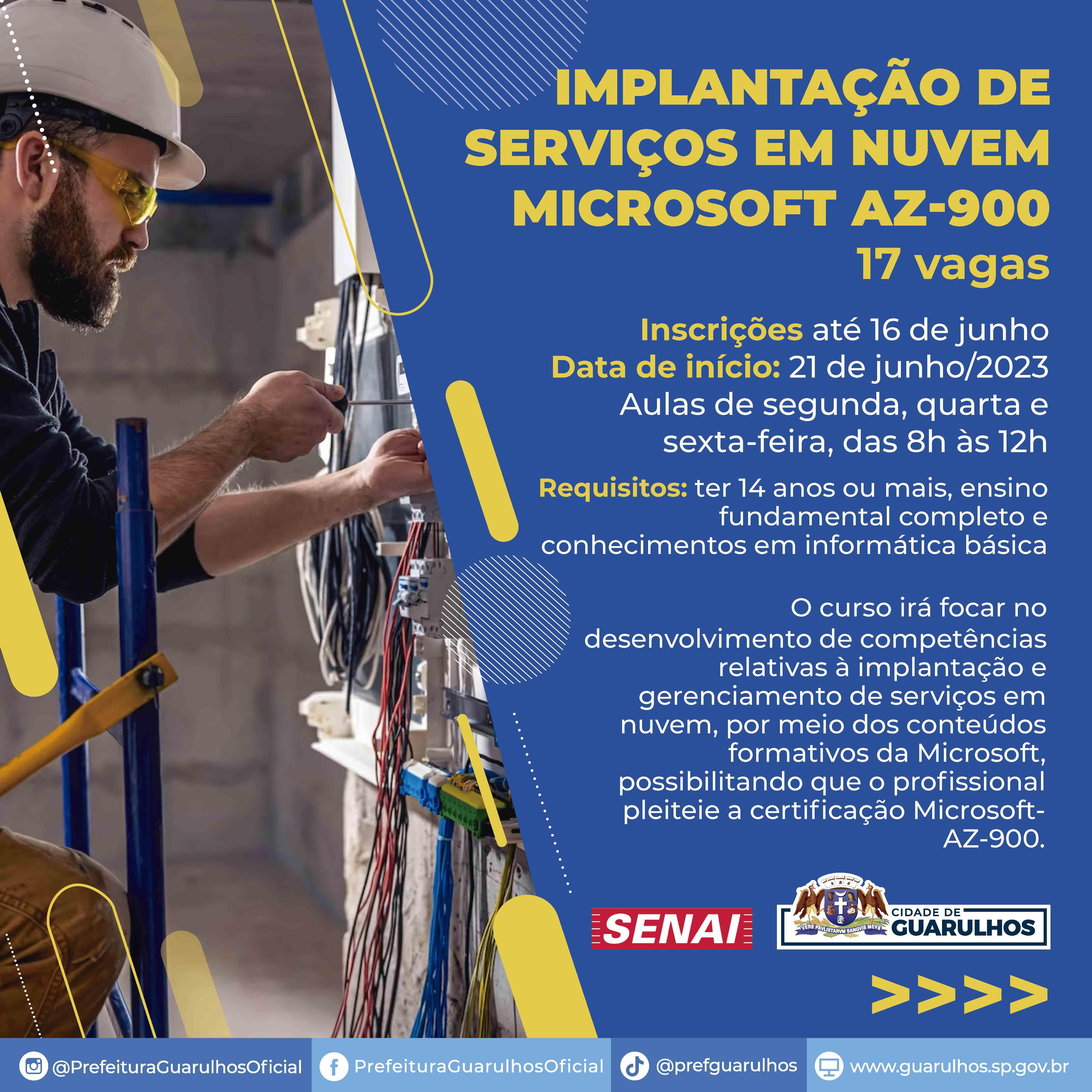 Implantação de serviços em nuvem - Microsoft AZ-900 – 17 vagas