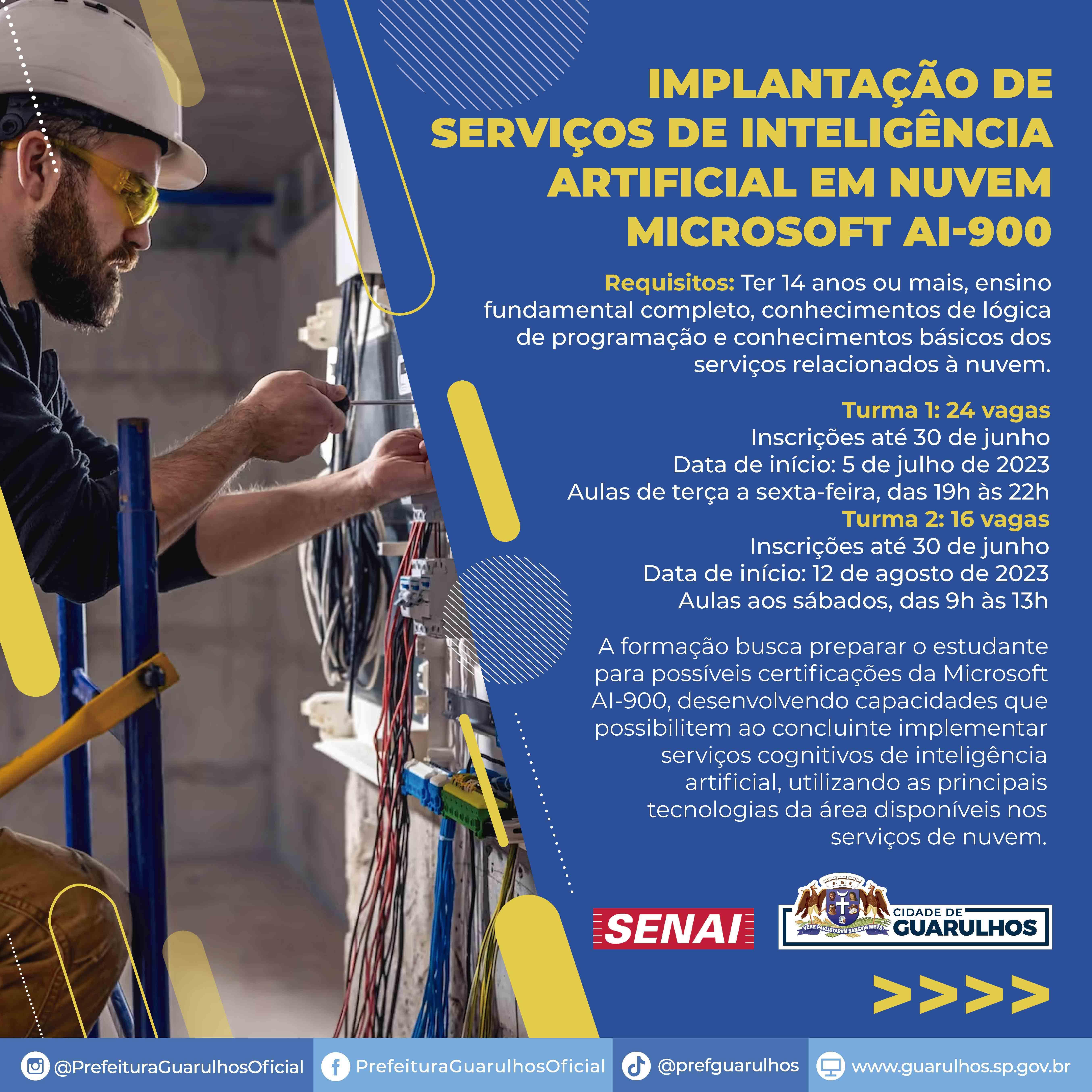 Requisitos: ter 16 anos ou mais, ensino fundamental completo e conhecimento de informática básica e de serviços relacionados à nuvem.