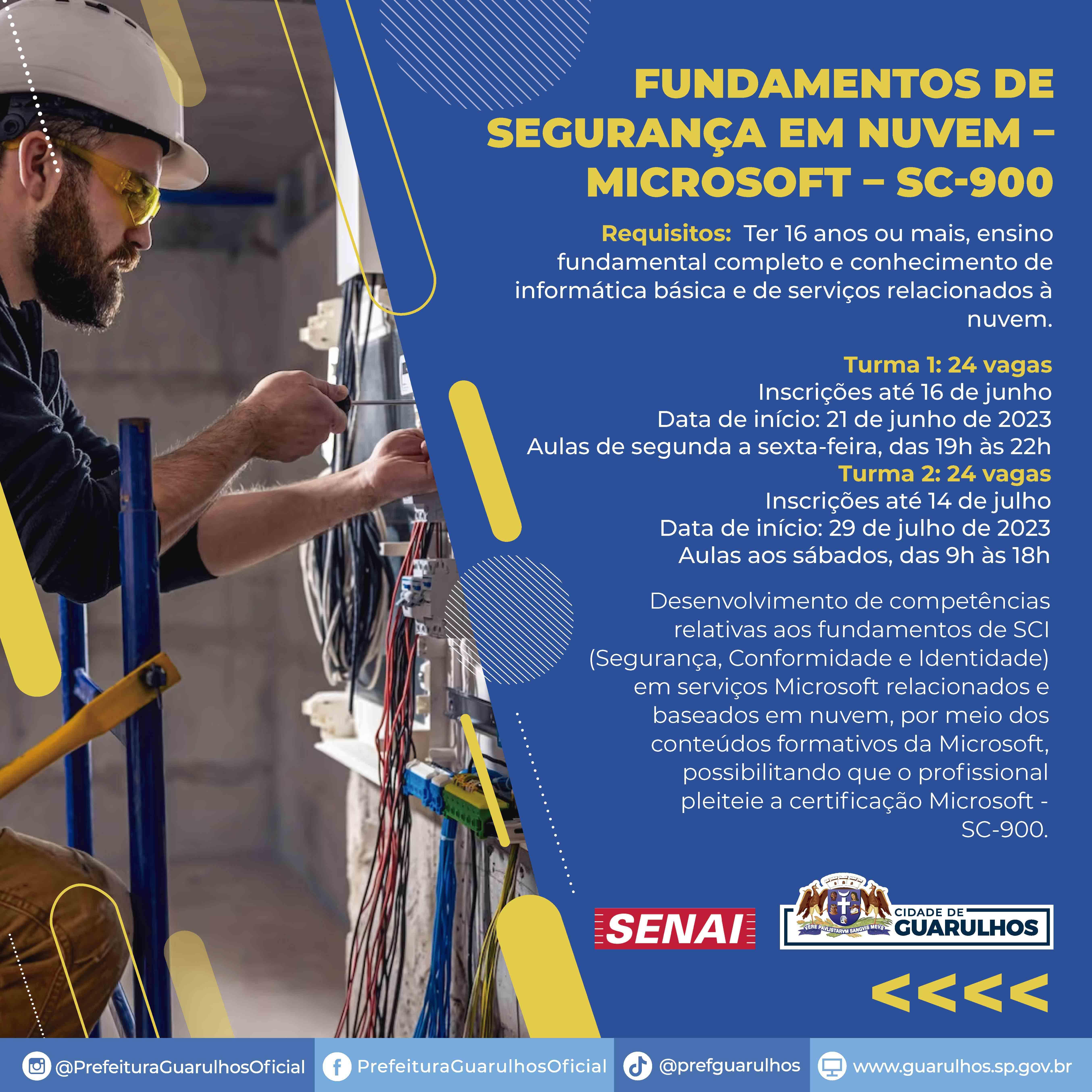 Desenvolvimento de competências relativas aos fundamentos de SCI (segurança, conformidade e identidade) em serviços Microsoft relacionados e baseados em nuvem por meio dos conteúdos formativos da Microsoft, possibilitando que o profissional pleiteie a certificação Microsoft - SC-900.