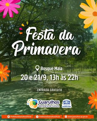 O Bosque Maia receberá nos próximos dias 20 e 21 de setembro a Festa da Primavera, celebração do início da estação que acontece em ambos os dias a partir das 13h, na tenda central do parque. O evento, aberto ao público e gratuito, oferecerá vasta programação para todas as idades, resgatando tradições e promovendo o convívio familiar e comunitário em um dos espaços mais verdes da cidade.