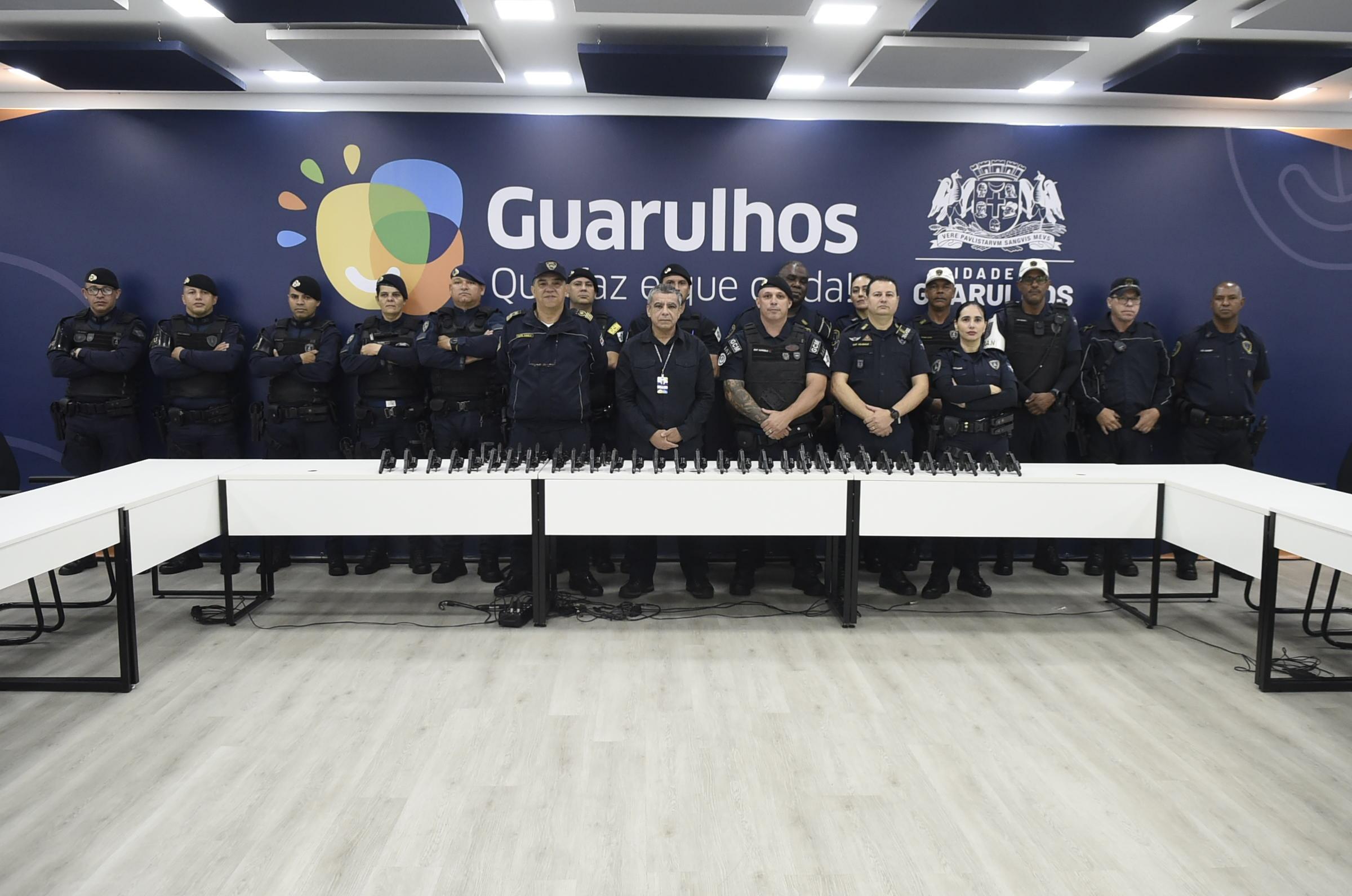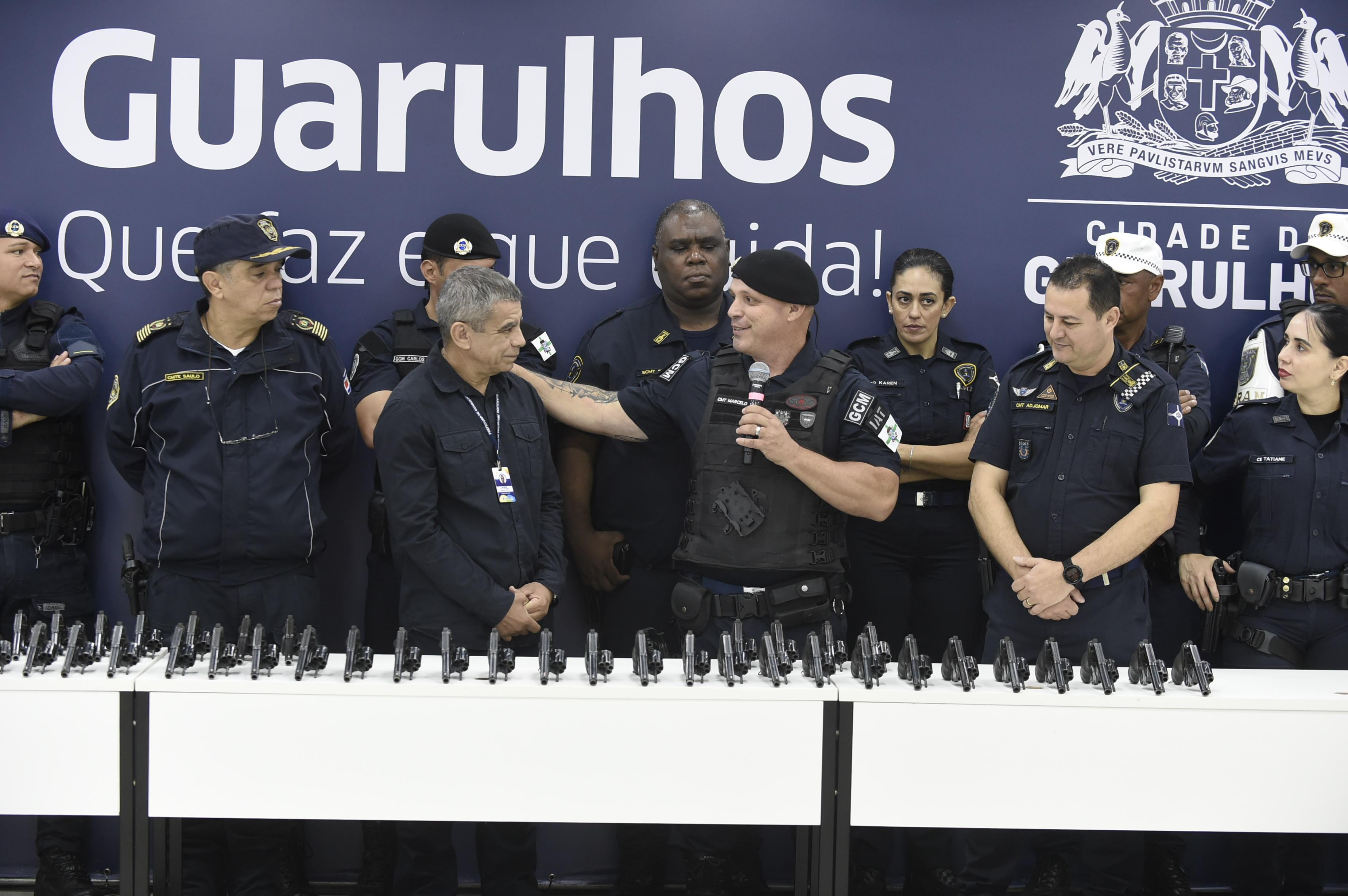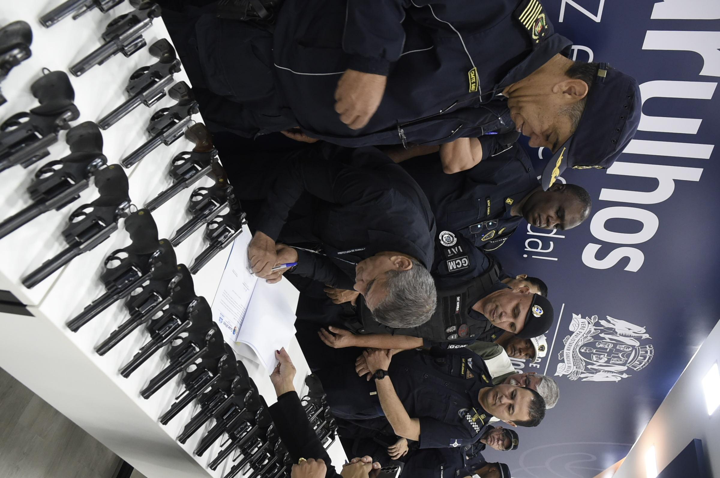 Após renovar os equipamentos da GCM (Guarda Civil Municipal) com 100 pistolas calibre .40, a Prefeitura de Guarulhos doou 42 revólveres calibre 38 às cidades de Taquarituba e Taiúva, em solenidade no Paço Municipal na manhã desta sexta-feira (10).