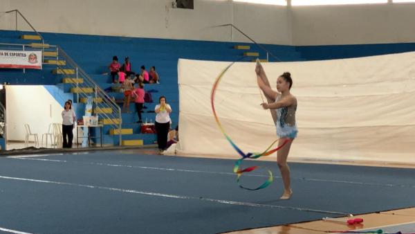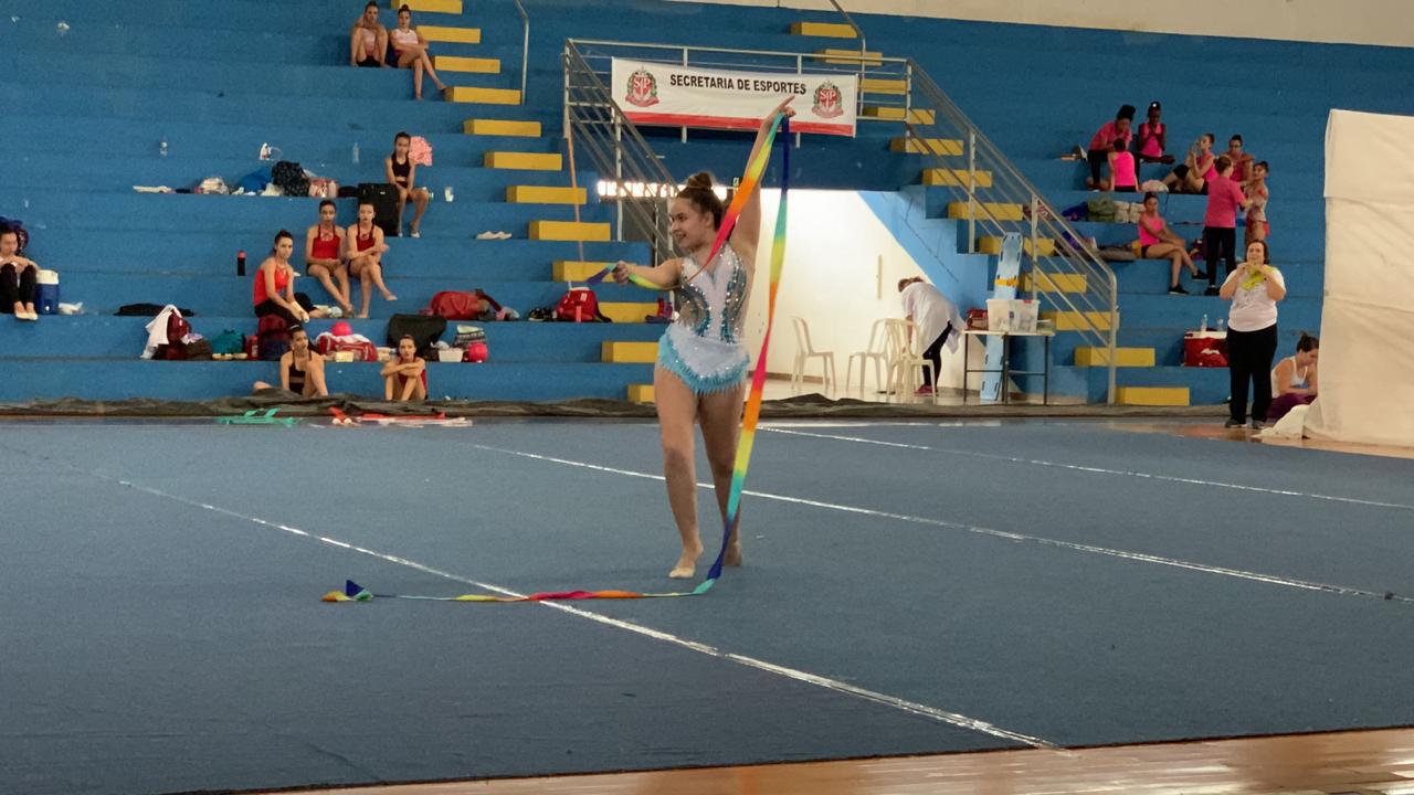 O primeiro pódio de Guarulhos nos Jogos Abertos do Interior veio na noite desta quarta-feira (13) na ginástica rítmica. A ginasta Ester dos Anjos conquistou a medalha de prata na fita, um dos aparelhos da modalidade, com a nota de 14,800.