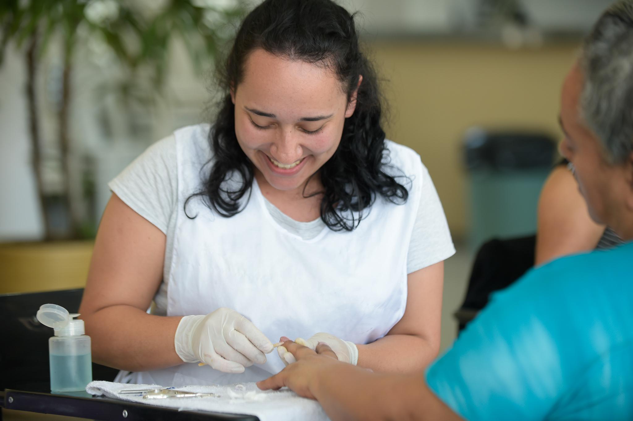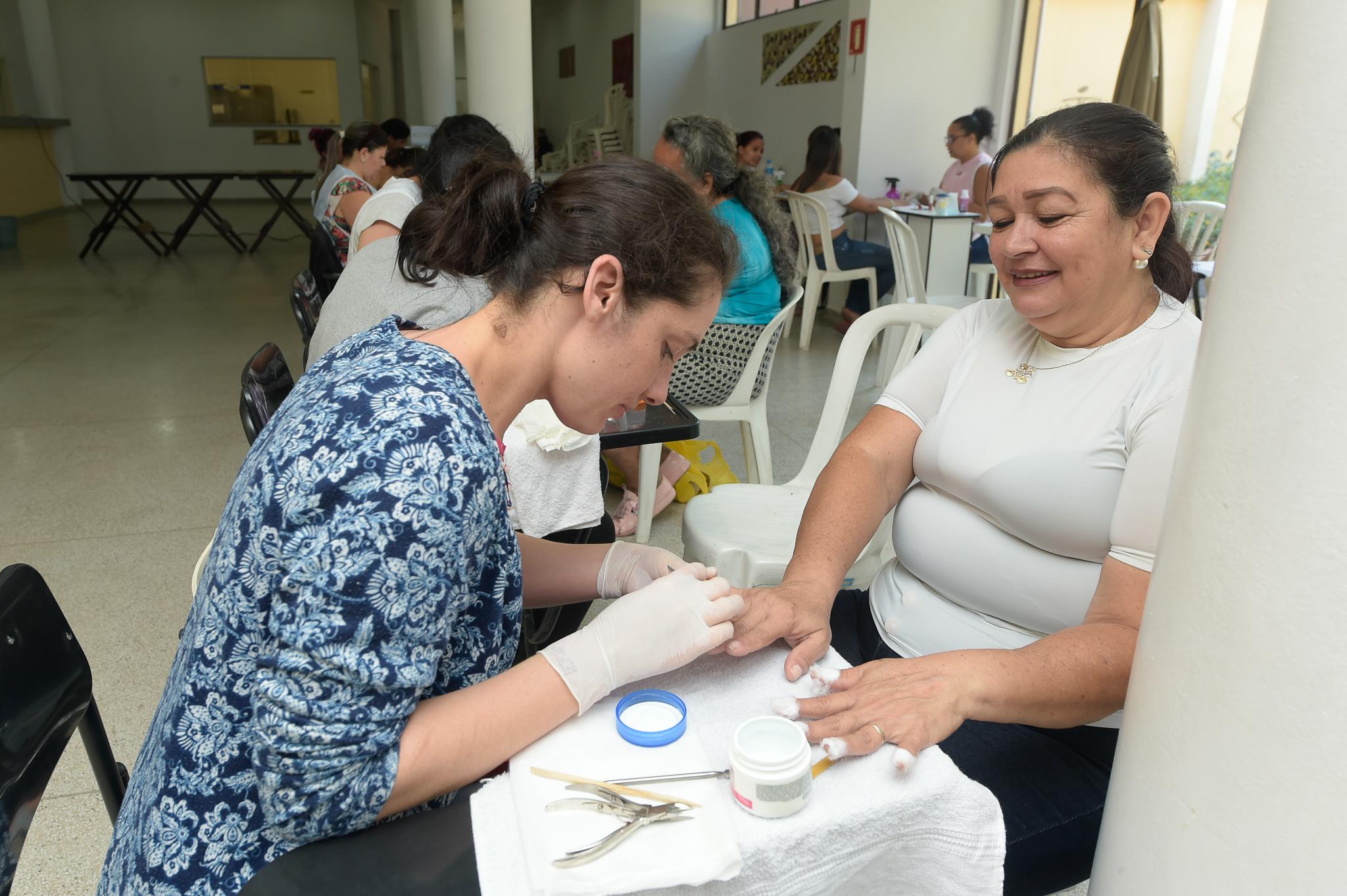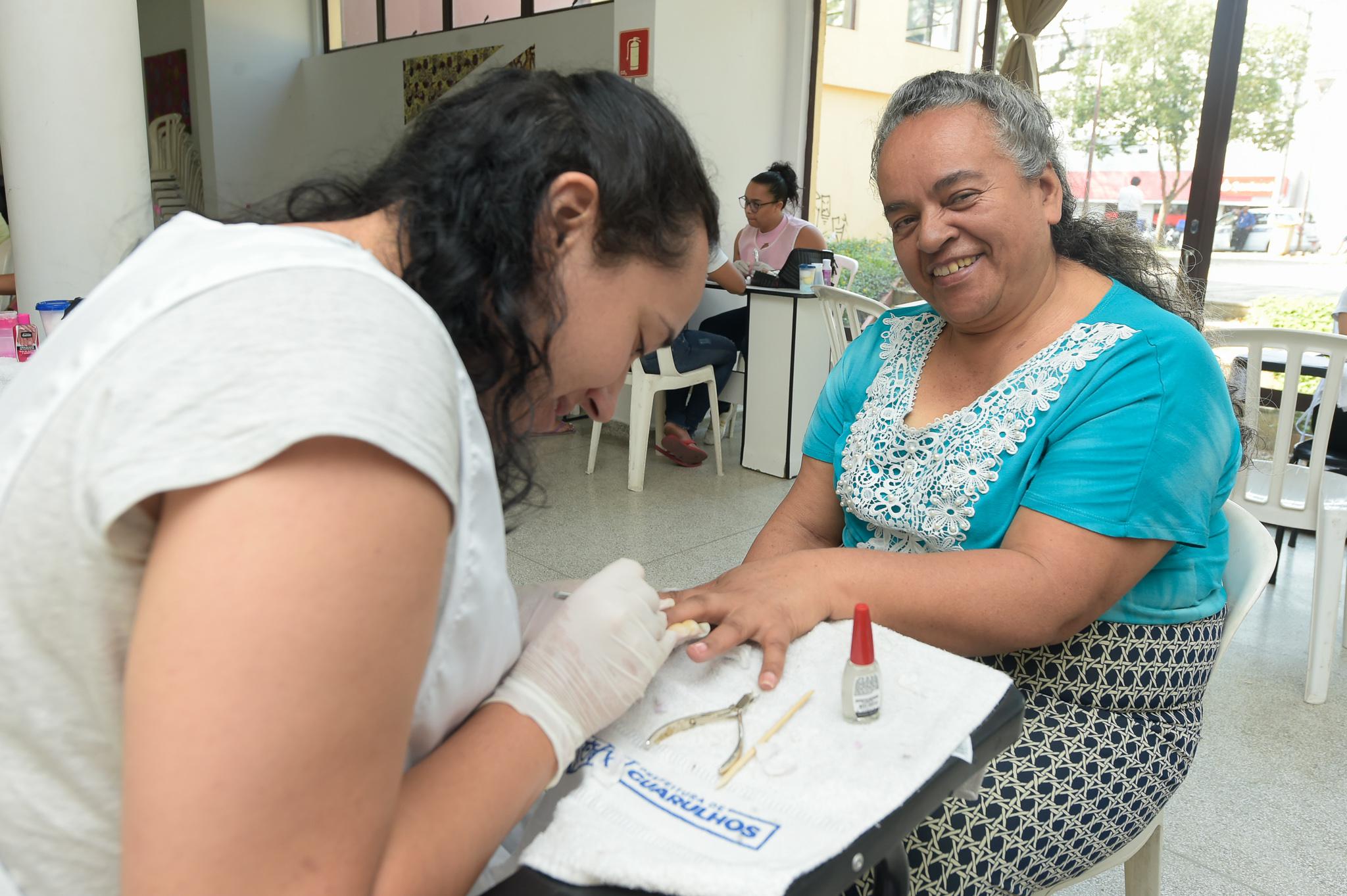 Aos 60 anos, Marlene dos Santos Ortega, moradora do Jardim Santa Paula, não tem o hábito de frequentar salão de manicure. Ela soube por uma amiga da ação social. “Estou achando ótimo fazer a mão. Nem me lembro se um dia fiz, acho que apenas quando casei, 44 anos atrás”, revelou Marlene, que tem quatro filhos, sete netos e faz faxina em residências.