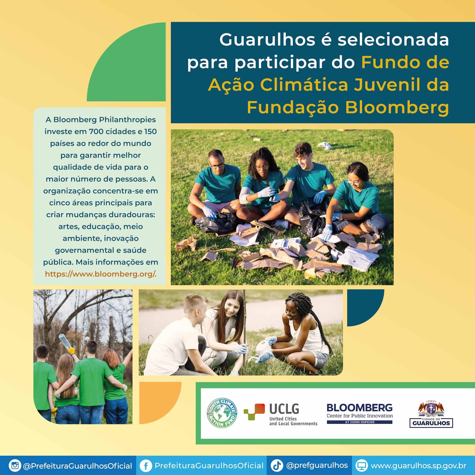 Guarulhos foi uma das cem cidades de 38 países selecionadas pela Bloomberg Philanthropies para ser contemplada com assistência técnica e financiamento para projetos que envolvam jovens com idade entre 15 e 24 anos, com foco em soluções climáticas. Os projetos eventualmente selecionados receberão apoio na forma de microfinanciamentos.