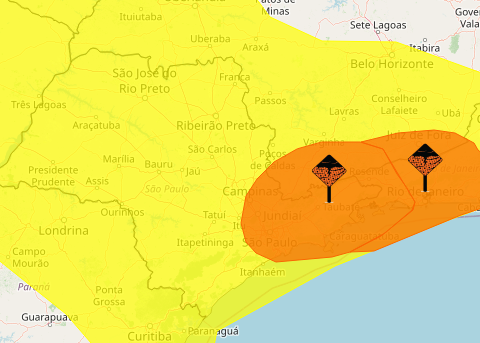 A Defesa Civil de Guarulhos alerta que todo o Estado segue sob alerta de perigo potencial (alerta amarelo), enquanto que a situação na Região Metropolitana de São Paulo está sob a condição de perigo (alerta laranja) devido ao risco de tempestades isoladas. Para a noite desta quinta-feira (13) a previsão é de chuva entre 20 e 30 mm/h ou até 50 mm/dia e ventos intensos (40-60 km/h), condição que traz baixo risco de corte de energia elétrica, queda de galhos de árvores, alagamentos e descargas elétricas.