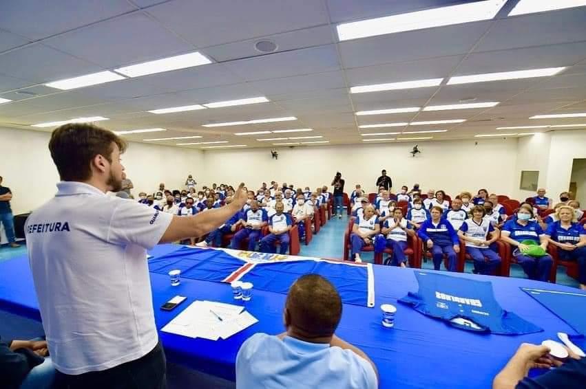 “O município de Guarulhos parte com o objetivo de trazer o título de campeão dos jogos com ótimas condições físicas e uniformes novos. Claro que adoraríamos que vocês vencessem a competição, mas o mais importante é buscar divertimento e satisfação. Após dois anos difíceis de pandemia esse evento marca a volta do nosso município ao cenário de referência em qualidade de vida e competição”, comentou Guti.
