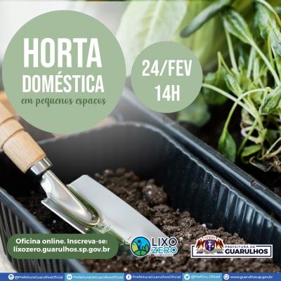 Falta de espaço não é mais impedimento àqueles que desejam cultivar ervas, temperos e até legumes dentro de casa. Para os que desejam aprender como fazer e manter uma mini-horta, a Prefeitura de Guarulhos promove na próxima quinta-feira (24), a partir das 14h, a oficina online Horta Doméstica em Pequenos Espaços. Para se inscrever basta preencher as informações solicitadas em forms.gle/VNDzVThHwXZCT7ye8. O link de participação será enviado até duas horas antes do início da live.