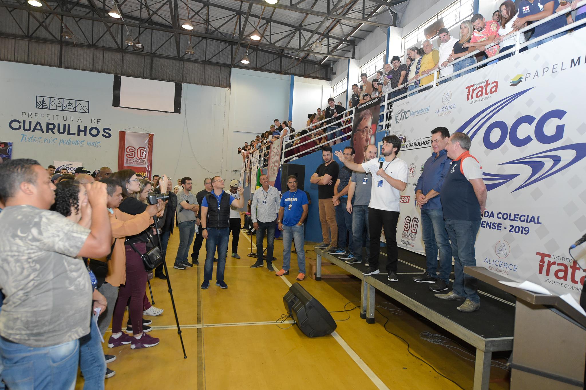 Neste sábado (14) o ginásio da Ponte Grande foi palco da abertura da 49ª edição da Olimpíada Colegial Guarulhense. Completamente lotado, o local recebeu centenas de alunos de escolas das redes municipal, estadual e particular que participarão da maior competição estudantil do país até o próximo dia 27.