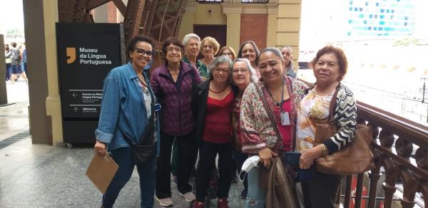 Um grupo de 15 idosas do Centro de Convivência do Idoso (CCI) Santa Mena visitou no último dia 4 de maio o Museu da Língua Portuguesa, em São Paulo. Sob a coordenação técnica da psicóloga Margarete Mota e da gestora do equipamento, Lea Ribeiro, elas participaram de um passeio enriquecedor e repleto de aprendizados sobre a língua portuguesa na exposição Línguas do Mundo.