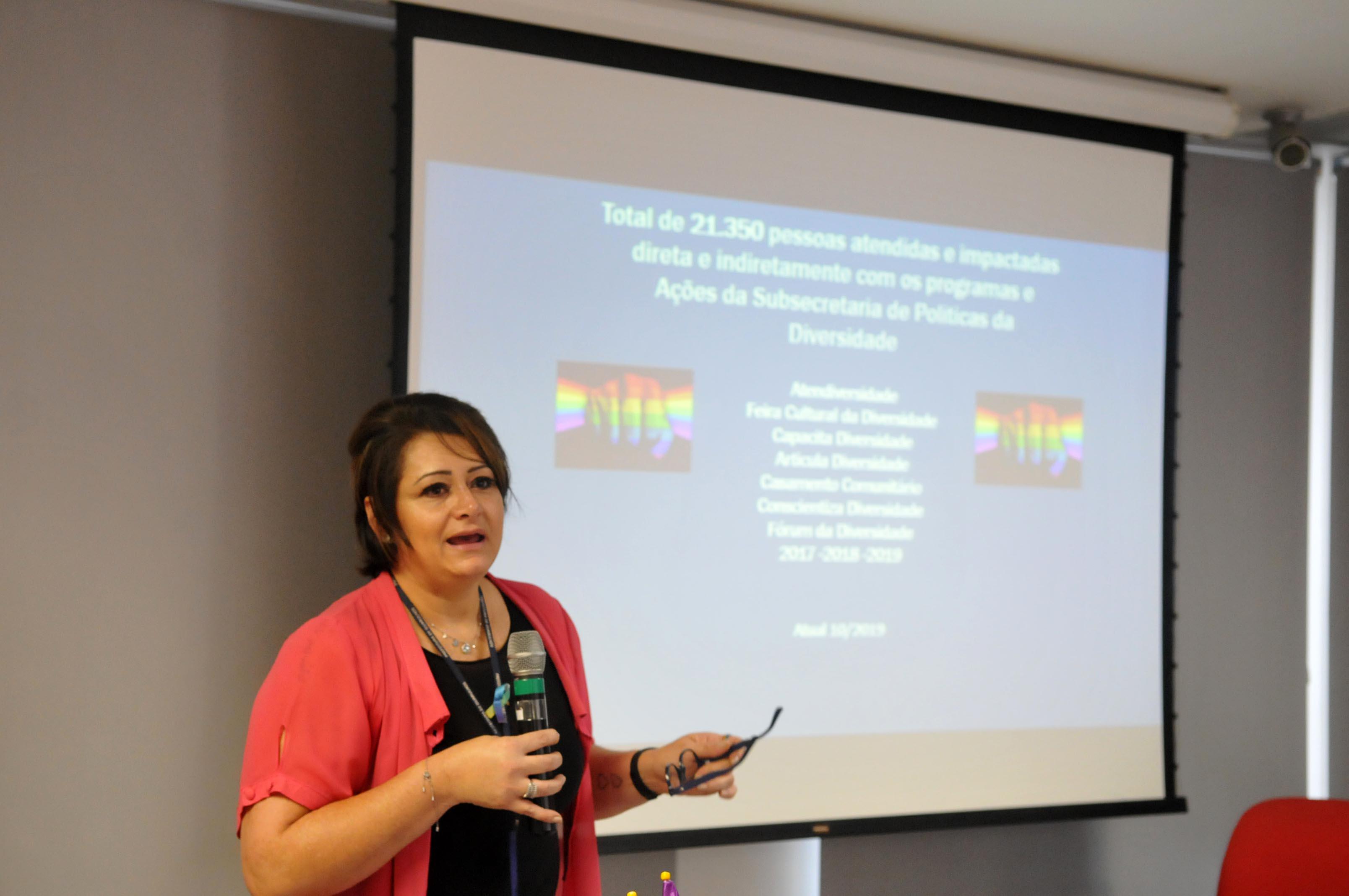 A subsecretaria da SPD, Ana Marques, que moderou os trabalhos do fórum, apresentou as atividades e ações realizadas pela pasta desde a sua criação, em 2017, bem como a implantação de um grupo de trabalho e de um conselho municipal para desenvolver mais políticas públicas para as pessoas LGBTI+.