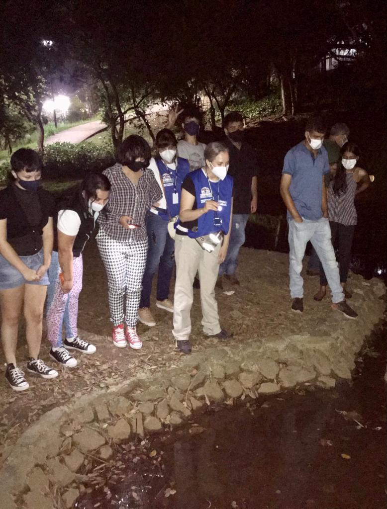 O Bosque Maia recebeu nesta quinta-feira (27) a primeira edição do ano da trilha noturna. Entre 19h e 21h, um grupo de 15 pessoas percorreu os caminhos do bosque e conheceu a fauna com hábitos noturnos que o maior parque urbano de Guarulhos abriga, como saruês (espécie de gambá brasileiro), corujas e morcegos frugívoros.