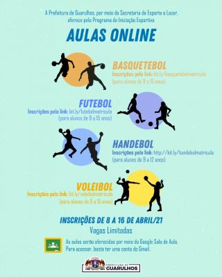 Os alunos poderão ter aulas online de basquetebol, futebol, handebol e voleibol por meio do Google Sala de Aula. Para se inscrever, basta acessar o link correspondente à modalidade escolhida: