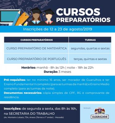 Os interessados em participar do curso preparatório de português e matemática para concurso ou Enem, oferecido de forma gratuita pela Prefeitura de Guarulhos, têm até a próxima sexta-feira (23) para se inscrever.