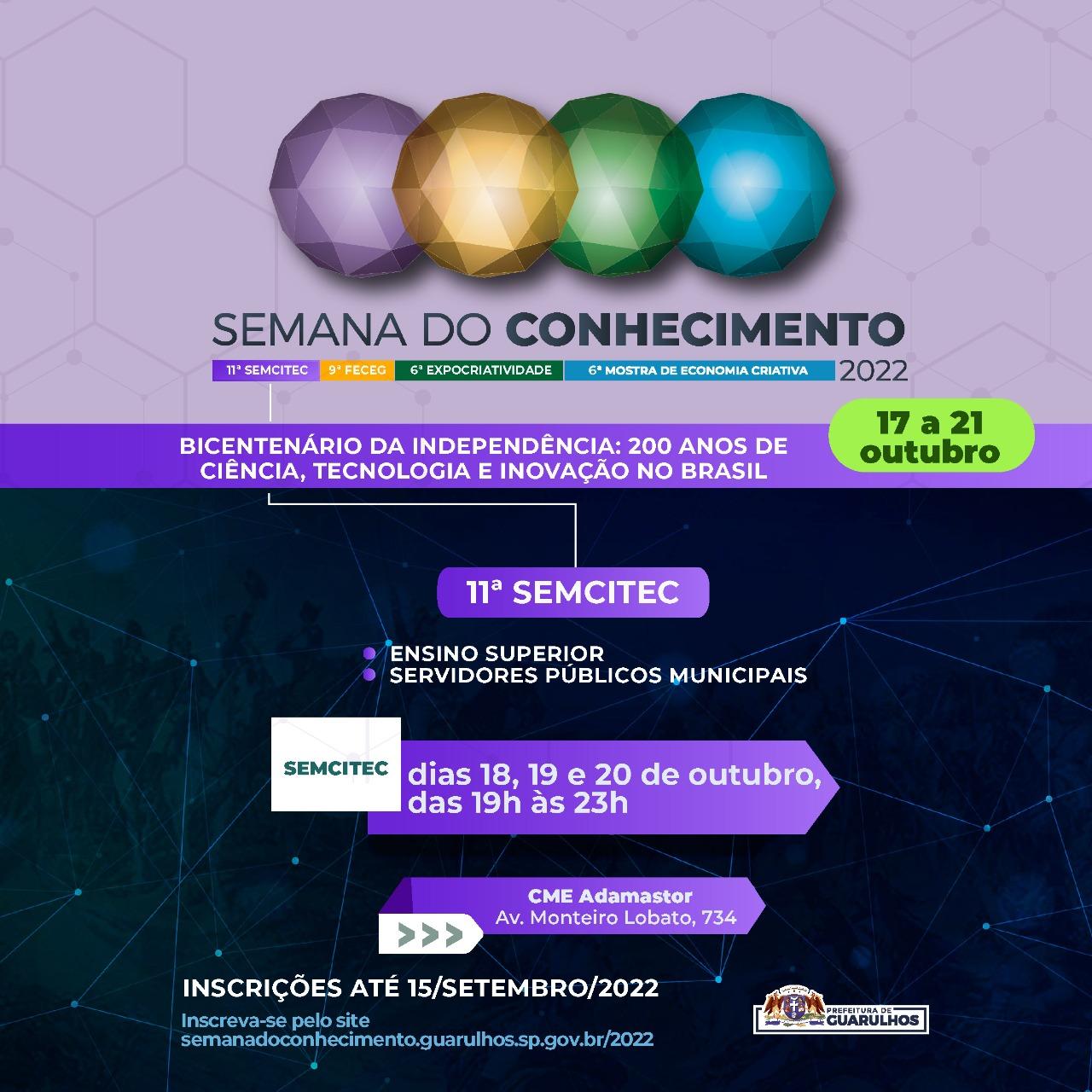 A edição deste ano marca o retorno da Semana do Conhecimento ao seu formato presencial, uma vez que em 2020 e 2021 o evento aconteceu de forma virtual devido à pandemia. Para tirar dúvidas e obter mais informações os interessados podem entrar em contato pelos e-mails dctiguarulhos@gmail.com e/ou semanadoconhecimento@guarulhos.sp.gov.br.