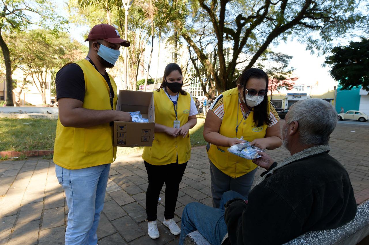O trabalho do Serviço de Abordagem Social da Secretaria de Desenvolvimento e Assistência Social foi intensificado para a busca ativa de pessoas em situação de rua interessadas em ir aos acolhimentos. O serviço também distribui máscaras de tecido e as orienta sobre a necessidade da higienização constante das mãos e maneiras para evitar a contaminação e propagação da doença.