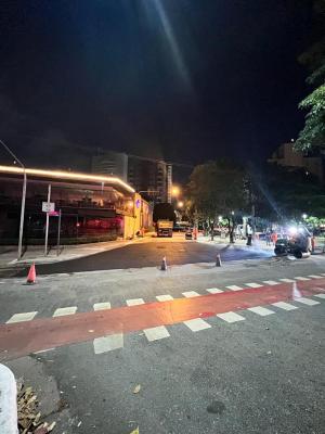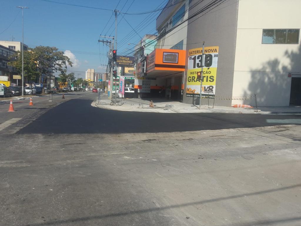 Foram realizadas obras de drenagem no cruzamento das duas vias, com a criação de um sistema de captação de águas pluviais, bem como a supressão do sarjetão existente, que prejudicava o tráfego de veículos.
