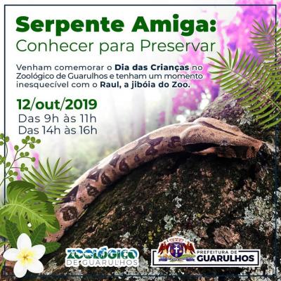 A oficina mais procurada no Zoológico de Guarulhos, “Serpente Amiga: Conhecer para Preservar”, terá duas edições neste sábado (12) em comemoração ao Dia das Crianças. As atividades acontecem das 9h às 11h e das 14h às 16h, com participação gratuita e livre. Basta chegar e se enturmar.