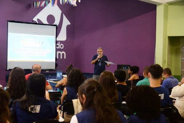 A palestra Somos Pessoas de Direitos? reuniu na última quarta-feira (7) uma turma de 50 pessoas, entre integrantes dos programas Jovens em Ação e Jovem Aprendiz do CIEE (Centro de Integração Empresa-Escola), no auditório da Subsecretaria da Juventude, que discutiram propostas que serão encaminhadas ao 4º Fórum de Direitos Humanos do município. A iniciativa da Prefeitura fez parte da programação da 2ª Semana de Direitos Humanos de Guarulhos, que se encerra nesta terça-feira (13).