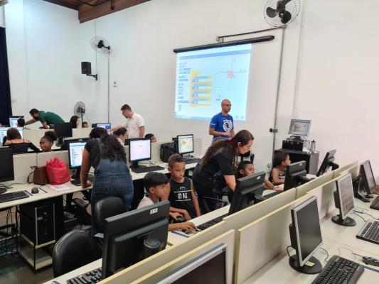 Uma turma de 20 jovens com idades entre oito e 12 anos composta por moradores da comunidade Guinle e por assistidos pelas unidades de acolhimento do Núcleo Batuíra participou do Scratch Day, uma oficina de criação de games para computador no último sábado (1º) no Centro Educacional Adamastor. A ação do Laboratório de Criatividade e Inovação do Setor Público da Secretaria de Gestão de Guarulhos (Esap Lab) integrou a programação do Experimenta 2023, maratona de inovação e tecnologia promovida pela administração municipal.