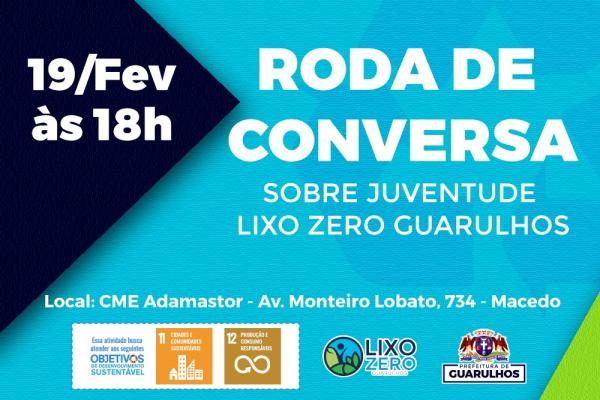 Na próxima quarta-feira (19), a partir das 19h, o Adamastor Centro recebe uma roda de conversa com o tema Caminhos da Juventude Lixo Zero Guarulhos. A participação é livre e aberta a todos que queiram auxiliar na liderança do movimento que objetiva sensibilizar, integrar e empoderar os jovens na busca de um mundo sem lixo.