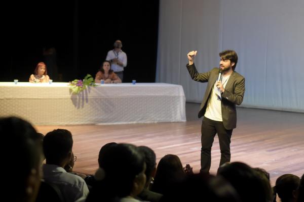 O Adamastor Centro recebeu na noite desta quinta-feira (30) a formatura de 230 alunos do programa Jovem Trabalhador. Em uma noite especial repleta de homenagens, os formandos puderam receber os seus diplomas pela conclusão dos cursos profissionalizantes das mãos do prefeito Guti e da secretária do Trabalho, Telma Cardia. A Pasta já formou mais de duas mil pessoas em cursos profissionalizantes nos últimos três anos.