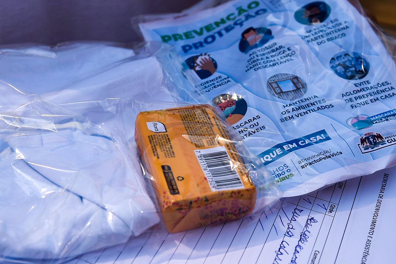 A Prefeitura de Guarulhos entregou nesta quarta-feira (22) um total de 800 kits (duas máscaras de pano, um sabonete e um folheto com orientações sobre a prevenção ao novo coronavírus) do programa Máscaras pela Vida a comunidades do Recreio São Jorge e da Vila Carmela. As distribuições estão sendo realizadas por equipes das secretarias de Habitação e Assistência Social (SDAS), além Coordenadoria da Defesa Civil, na medida em que os insumos (tecidos, elásticos, linhas) são doados e as máscaras confeccionadas por servidores da SDAS e por voluntários.