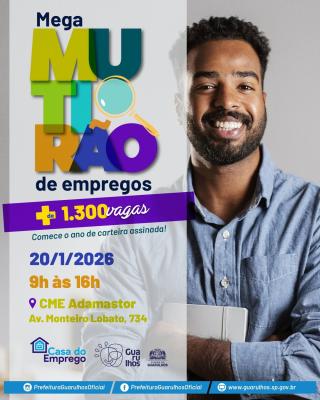 A Secretaria de Desenvolvimento Econômico e Trabalho da Prefeitura de Guarulhos promoverá na próxima terça-feira (20), das 9h às 16h, um Mega Mutirão de Empregos com o objetivo de ampliar as oportunidades de trabalho formal no município. A ação, sediada no CME Adamastor (avenida Monteiro Lobato, 734, Macedo), reunirá empresas de destaque dos setores de comércio, logística, varejo e aeroportuário, oferecendo mais de 1.300 vagas com carteira assinada para diferentes perfis profissionais.