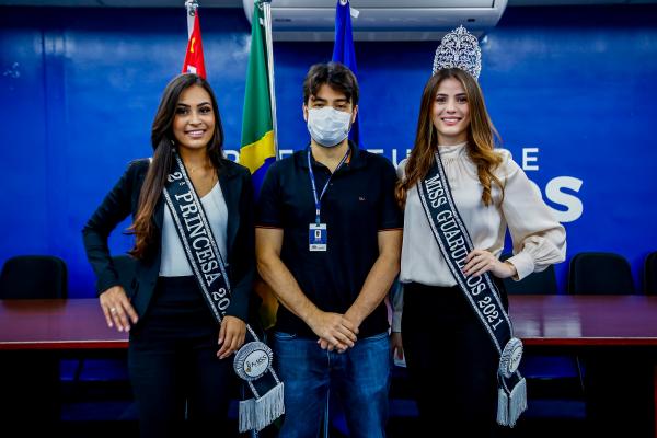 A Miss Guarulhos 2021, Nathália Gonçalves, e a segunda princesa, Priscila Moura, falaram sobre suas experiências no concurso durante um bate-papo com o prefeito Guti, no auditório do Paço Municipal, na manhã desta segunda-feira (20).