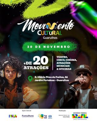 O Movimento Cultural Guarulhos é uma realização da Prefeitura de Guarulhos, por meio da Secretaria de Cultura e Turismo, com apoio do Governo Federal, Ministério da Cultura, Lei Paulo Gustavo e Funcultura – Fundo Municipal de Cultura de Guarulhos.