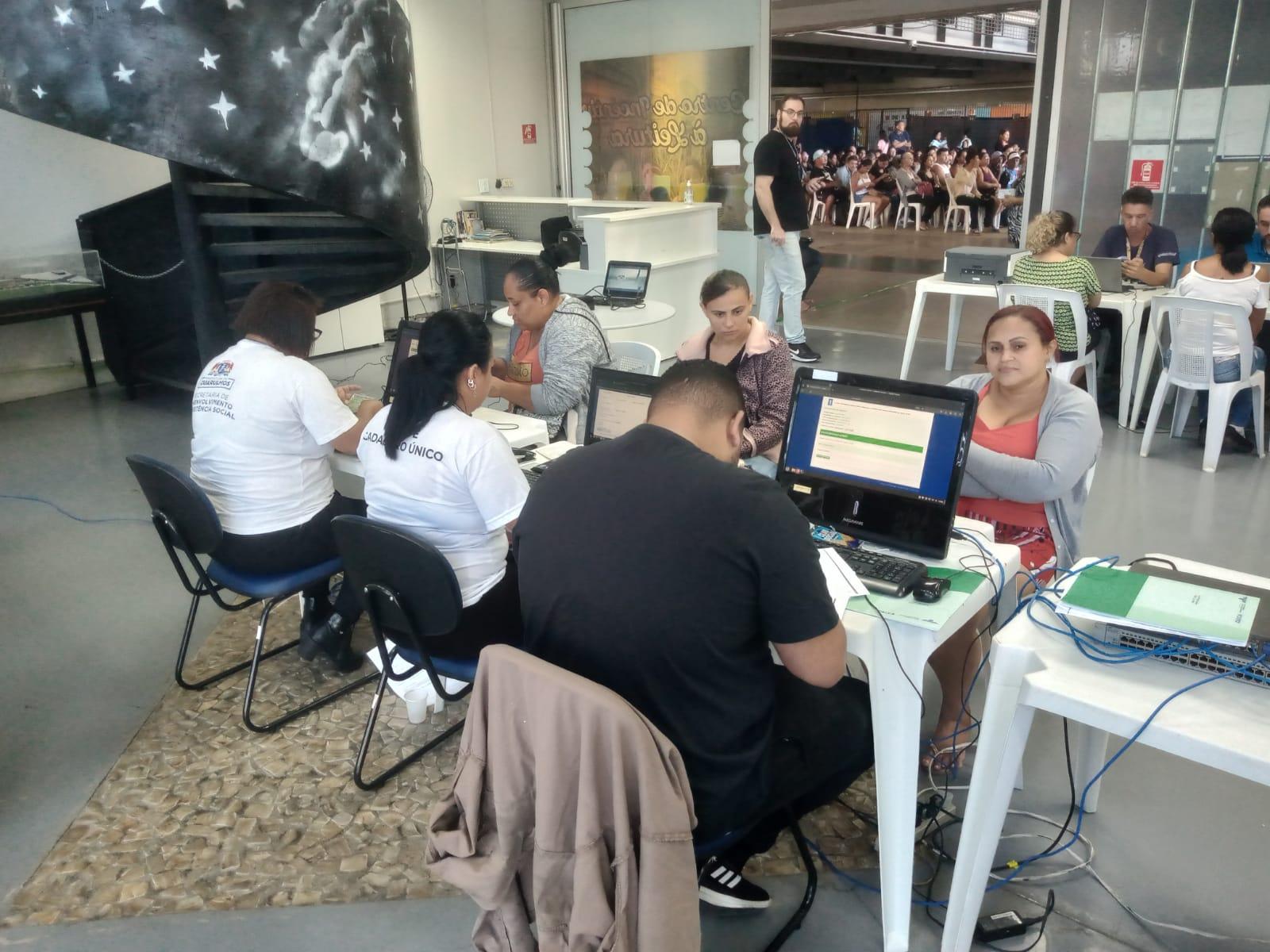 O mutirão do CadÚnico que aconteceu no último sábado (27) no CEU Pimentas atendeu um total de 200 famílias. Elas puderam atualizar seus dados e realizar novas inscrições no Cadastro Único para Programas Sociais, banco de dados do governo federal pelo qual a população tem acesso a benefícios municipais, estaduais e federais.