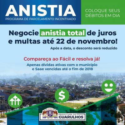 Na próxima sexta-feira(22) será encerrada a primeira fase do Programa de Parcelamento Incentivado (PPI), que prevê até isenção total dos juros e multas em dívidas ativas com o município ou o Saae Guarulhos vencidas até o fim de 2018. Pessoas físicas e jurídicas interessadas em negociar seus débitos devem comparecer a uma unidade da Rede Fácil de Atendimento ao Cidadão.