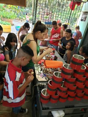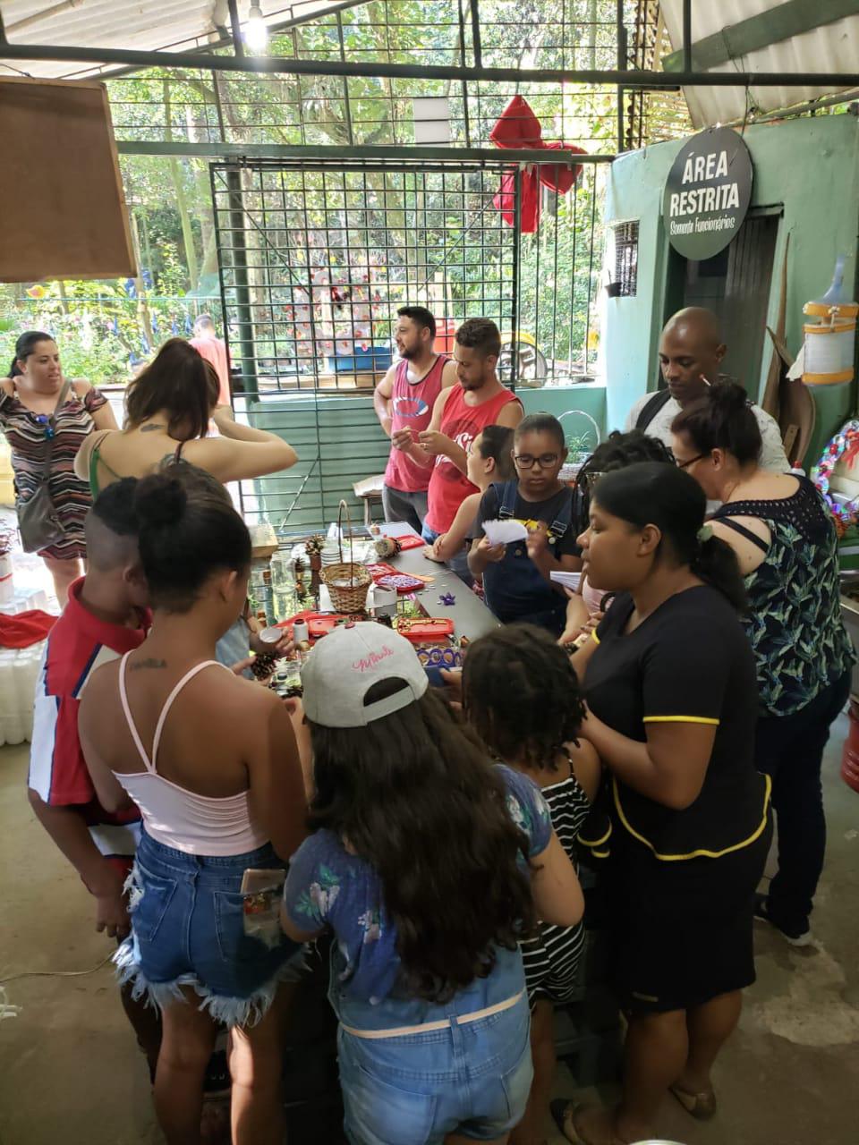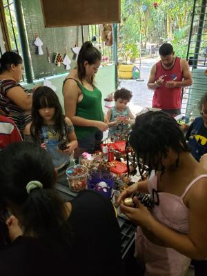 Em meio às comemorações do 459º aniversário de Guarulhos, nesse domingo (8), cerca de 50 pessoas, entre crianças e adultos, participaram da oficina especial de confecção de artigos de decoração natalina com materiais recicláveis, como garrafas pet, e naturais como pinhas. A atividade aconteceu no Centro de Educação do Bosque Maia, das 14h às 17h.