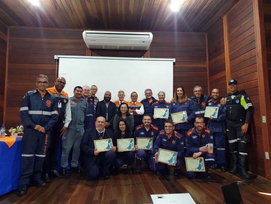 Por meio de aulas teóricas, práticas e a realização de simulados, nove agentes da Coordenadoria Municipal de Proteção e Defesa Civil e dois funcionários da Rede Fácil de Atendimento ao Cidadão praticaram métodos de salvamento e atendimento humanitário em desastres naturais, como enchentes. Eles aprenderam ainda a utilizar equipamentos de comunicação e de proteção individual.