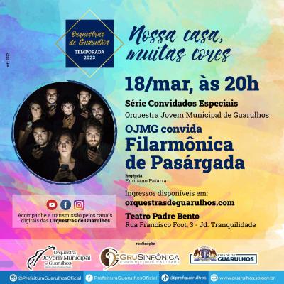 No próximo sábado (18), às 20h, a Orquestra Jovem Municipal de Guarulhos convida ao palco do Teatro Padre Bento, no Jardim Tranquilidade, a Filarmônica de Pasárgada, grupo idealizado pelo compositor Marcelo Segreto. Os ingressos gratuitos para o espetáculo podem ser adquiridos pelo site http://orquestrasdeguarulhos.com/ingressos.