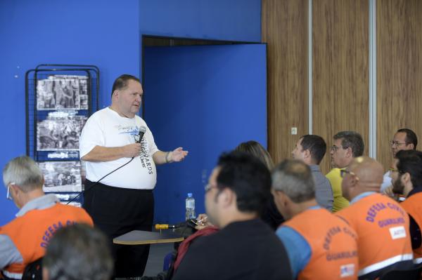 A Coordenadoria Municipal de Proteção e Defesa Civil (Compdec) reuniu, nesta terça-feira (13), no Teatro Adamastor, cerca de 50 servidores de diversos setores do município para participar da palestra sobre riscos geológicos, ministrada pelo geólogo e pesquisador científico do Instituto Geológico Dr. Jair Santoro. A apresentação contemplou conceitos básicos para o reconhecimento de cenários da natureza que apresentam perigos potenciais à vida e noções de procedimentos para a redução de riscos.