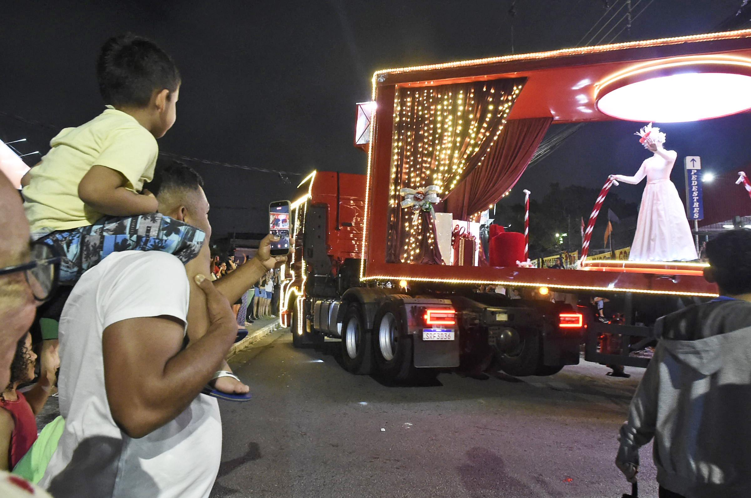As comitivas foram compostas por cinco caminhões iluminados que representam os seguintes cenários: Carrossel dos Sonhos, Dança com Cartas, Presente de Natal, Caixinha de Música e Celebração do Natal. Além da presença do casal Noel, a Caravana trouxe espetáculos visuais e sensoriais como projeções, luzes e a coreografia ao vivo de uma bailarina.