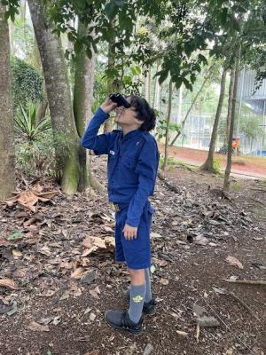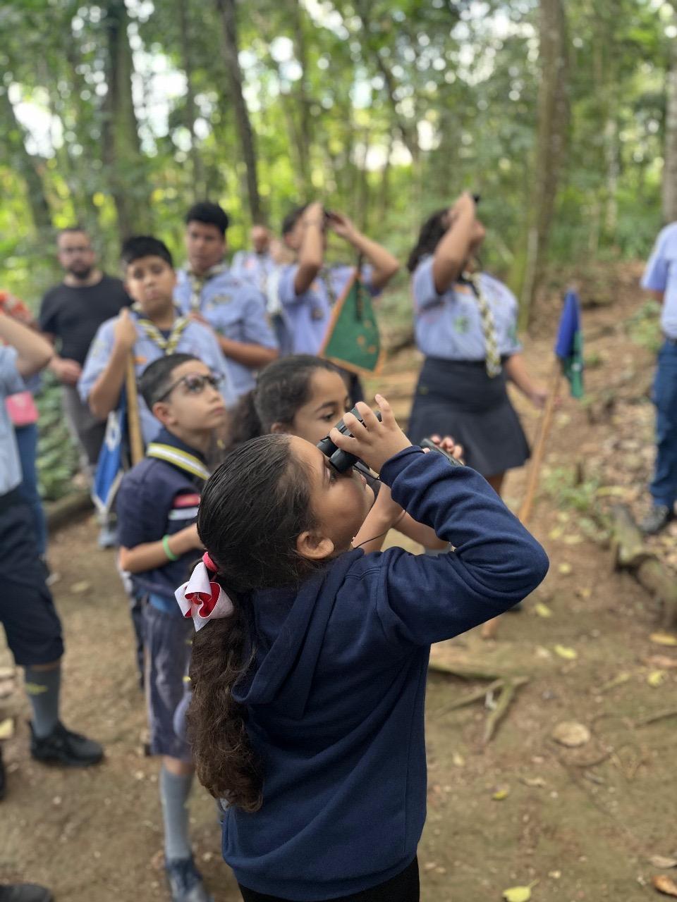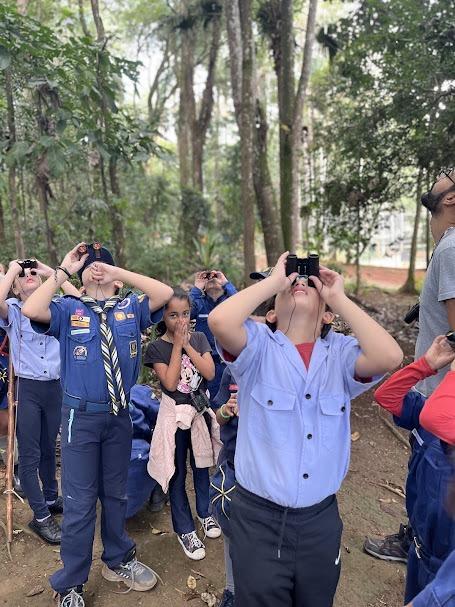 Durante a caminhada na trilha, os participantes utilizaram binóculos disponibilizados pelo Cemea para observar os pássaros mais de perto. Teve ainda uma atividade de colorir aves, estimulando a atenção entre crianças e adolescentes.
