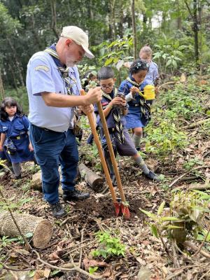 Os escoteiros plantaram cinco espécies de ipês da Mata Atlântica para recomposição florística ao longo da trilha do Sabiá. As árvores substituíram cinco espécies nativas derrubadas devido a fortes rajadas de vento, o que comprometeu a sustentação da fauna, especialmente da avifauna, conjunto de aves da região.