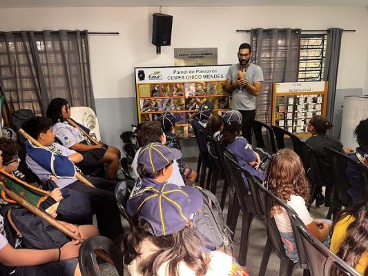 O biólogo e coordenador de programas educacionais, Marcus Vinicius de Melo Oliveira, apresentou ao grupo uma lista catalogada de 39 aves do parque, com seus respectivos nomes científicos e cantos característicos. Utilizando um painel interativo, as crianças puderam identificar os sons dos pássaros que habitam a área.