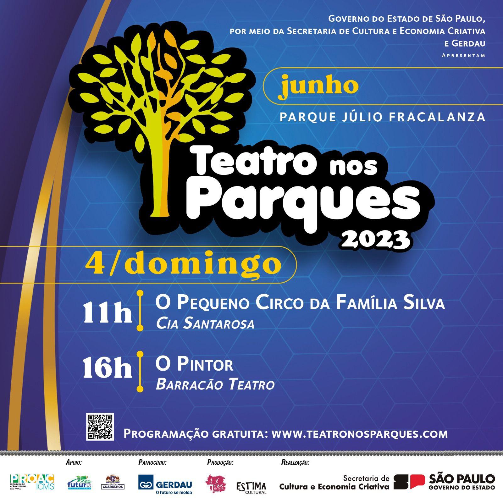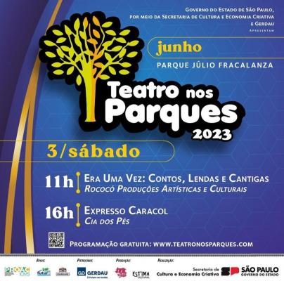 Neste fim de semana, dias 3 e 4 de junho, às 11h e às 16h, o Parque Júlio Fracalanza, na Vila Augusta, recebe espetáculos gratuitos do projeto Teatro nos Parques, evento que acontece em diversos municípios do Estado com espetáculos para toda a família com o objetivo de fornecer cultura, entretenimento e lazer para a formação de cidadãos socialmente responsáveis.